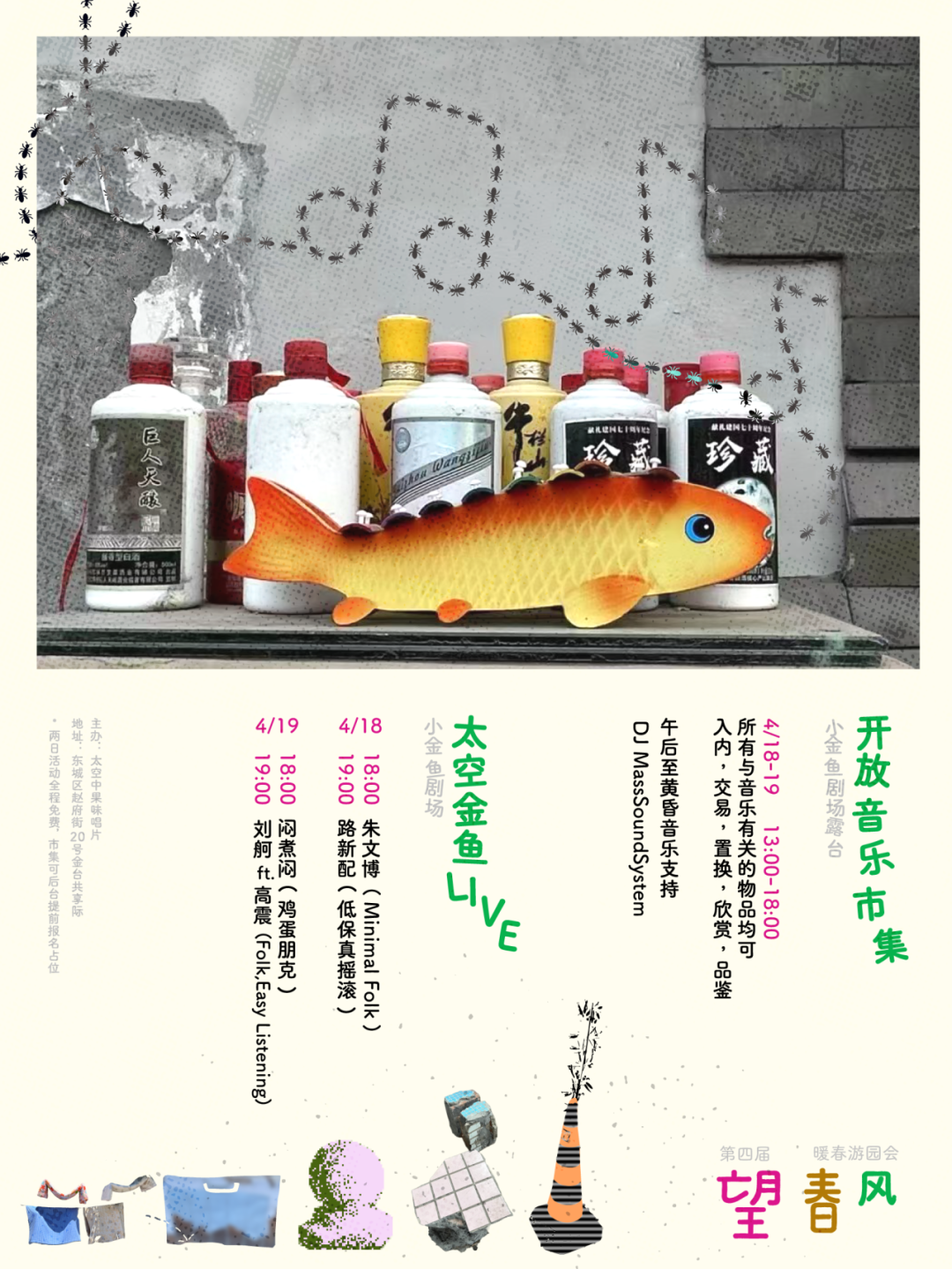 第四届·望春风暖春游园会以「胡同是公共的家」为主题,本次特别邀请到太空中果味唱片策划主办音乐活动。4月18日-4月19日,太空中果味唱片将在金台·共享际的小金鱼剧场举办两日LIVE演出、DJ Set,同时小金鱼露台开放音乐市集,带上你与音乐相关的传家宝,一起欣赏、品鉴与交易,庆祝一年一度的国际唱片店日。